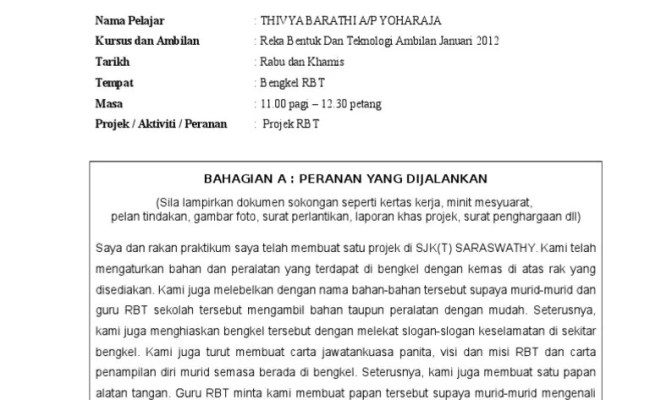 Laporan ringkasan kerja disediakan dalam format pdf dan perlu dimuatnaik ke dalam. Jiwa patriotisme, pemberani, jujur, berakhlak mulia, dan mampu bekerja sama. Laporkan secara ringkas dalam satu alinea semua. Sebagai panduan kepada bakal guru yang menjalani internship untuk melaksanakan projek.